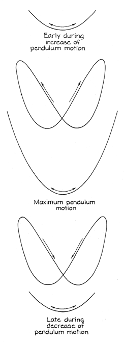When the pendulum motion dominates, energy is fed back to the spring oscillations because of a simpler resonance: the spring is periodically pulled at a frequency matching its oscillation frequency. Each time the mass swings to its maximum displacement during the pendulum motion it pulls on the spring. Since for each swing of the pendulum the spring is pulled, twice, the pulling frequency (twice that of the pendulum motion) matches the frequency of the spring oscillations. The oscillations begin to build up. Energy drains from the pendulum motion until it is almost entirely in the oscillations of the spring. Olsson observed that sometimes the mass on the end of the spring moved in a relatively stable path as the pendulum motion built up and died down. In some cases the path was in the shape of a U. In other cases it was an inverted U. In still other cases the path was not well defined. Recently H. M. Lai of the Chinese University of Hong Kong reexamined the spring pendulum, extending and correcting the prior mathematical analysis. He found that the stable paths are Lissajous figures (named after Jules Antoine Lissajous, a French physicist of the 19th century) that depend on several parameters of the apparatus and in particular on' the relative phases of the spring and pendulum motions. The path can vary in several ways as pendulum motion builds up and decays [see illustration below]. It may begin in the shape of a U that distorts into a bow-tie figure. As the pendulum motion nears its maximum the path returns to the shape of a U. During the decay of the motion the path distorts into a bow-tie shape is before, but now with the reverse motion. Similar variations of the path take place, if the mass initially follows a path in the shape of an inverted U. The Wilberforce pendulum has seldom been discussed since the original publication. It is another example of a system that can oscillate in normal modes and can display beats, when it is not in a normal mode. The normal modes involve both the vertical motion of the object on the spring and its rotation about a vertical axis. The coupling between the vertical motion and the rotational motion is achieved by the coiling of the spring. If you stretch a spring, its end rotates too. In one of the normal modes of oscillation the end of the spring makes a screwing motion in the same direction as the coiling of the spring. In the other normal mode the screwing motion is in the opposite direction. For the pendulum to perform best the frequency of pure rotational oscillations must match the frequency of pure spring oscillations. One achieves the match by fitting the object hung from the pendulum with extended arms that make it possible to change the frequency of the rotational oscillations. Two symmetrically placed bolts, each with a nut, extending out from the vertical axis of the pendulum will serve. Moving the nuts outward decreases the frequency of the rotations oscillations and moving them inward increases it. Adjust them until)he frequencies of the oscillations match. You can put the pendulum in one of its normal modes of oscillation, if you I pull down on it while you turn the end through the proper angle. When you release the pendulum, it oscillates vertically and rotates back and forth with unvarying amplitudes, that is, without any transfer of energy between the vertical and rotational oscillations. If you pull the pendulum down without rotating the end, the two normal modes beat when you release it. At times the pendulum oscillates vertically with no rotation and at other times it rotates back and forth with no vertical oscillations. Much more can, be learned by building and studying oscillating systems that display normal modes or parametric resonance. Can you find additional examples of either type? Since the Wilberforce pendulum seems to have been neglected over the years, you may also want to analyze it in greater detail.