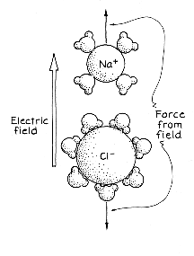 The presence of sodium chloride in the water increases the heating rate. The salt separates into positive sodium ions and negative chlorine ions. The positive ions are surrounded by up to four molecules of water, the negative ions by up to seven. In each case the positive or negative end of a water molecule is electrically attracted to the charged ion. The electric field of a microwave drives the hydrated ions through the water, pushing the sodium ions in the direction of the field and the chlorine ions in the opposite direction. Whenever the hydrated ions bump into water molecules, energy is transferred to the random motion of t hose molecules, heating the water. The water molecules locked into the crystalline structure of ice cannot absorb energy from microwaves because they are immobile. How then does a microwave oven melt ice or cook frozen foods? The answer is that the objects are not completely frozen. Within seconds after you remove an ice cube from the freezer its surface begins to melt. If you put it in a microwave oven, the liquid layer on the outside absorbs microwaves, heats up and melts the ice. Frozen foods exposed to air may also be coated with a layer of liquid. They melt there and at many internal points where
