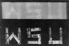 During a stick-and-slip separation the distance between the stripes depends on the properties of the adhesive, the backing and the film surface. For example, the stiffness of the tape partially determines the mechanics of how the adhesive layer on the tape breaks free of the film. Dickinson and Donaldson ran trials with transparent or filament tape stiffened by one or two layers of electrical tape attached to the backing. When the stiff composite was peeled at about the same rate as in previous trials with unstiffened tape, the distance between the stripes doubled to about two millimeters and the intensity of the sparks weakened. The distance between stripes also depends on the direction in which the tape is pulled. When it is pulled directly upward from the plane of the film, the stripes are closely spaced. When it is pulled along the plane of the film, the stripes are farther apart. There are also more high-intensity sparks then, presumably indicating that the distortion and rupture of the adhesive must be severe at times, so that highly charged patches are created. To make the autograph in Figure 3 the tape was first pulled along the plane of the film and then pulled directly upward. The pressure with which a tape is attached to the film influences the extent of sparking. When Dickinson and Donaldson attached one strip of Magic Transparent Tape to a Type 107C film, they pressed particularly firmly on the bottom half of the strip. When the tape was peeled, more and brighter images were produced in the bottom half. The influence of pressure can sometimes be seen without extra pressing because of the way the transparent tape lifts off a surface: the edge of the tape flexes just before it lifts off, pressing down on its tacky side. The firmer attachment of the edge prior to separation increases the sparking that takes place in the course of separation, and so the autograph displays a bright outline of the tape's edge. The rupture of a tape's adhesive material at an interface with a surface is called adhesive failure. In contrast, the rupture of a single type of material is called cohesive failure. It is normally considerably weaker than adhesive failure in producing charged patches and the consequent sparking. To test this idea, Dickinson and Donaldson found a way to have both types of failure take place during the peeling of a strip of Magic Transparent Tape. They first stuck a layer of Scotch Brand double-sided tape (both sides of which are sticky) to the film. On the tape they attached three letters, W, S, and U, that they had cut from the transparent tape. The sticky side of the letters faced down. Then they stuck a strip of Magic Transparent Tape over the entire length of the double-sided tape.