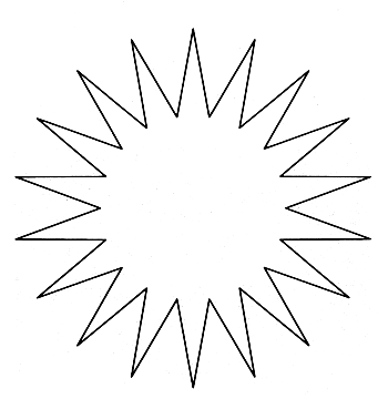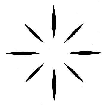 when the lines are replaced with petal-like figures that are widest at the middle and pointed at the ends, as in Figure 8. The pointed ends should remove the temptation to imagine a hidden connection. For me, however, the illusion of a central figure is considerably weaker with this pattern than it is in the case of lines, suggesting that although a hidden connection may not be necessary, it certainly helps. Another pattern investigated by Kennedy consists of radial "lines" that are strips of black dots; the dots fade toward the inner end of each line. A version of Kennedy's pattern, devised by Barry L. Richardson of the University of Toronto, is seen in the illustration at the right. It has solid but tapered lines. Both patterns create the illusion of a bright center resembling the sun. A photographic negative of either pattern generates a dark center, as if a black hole were there.