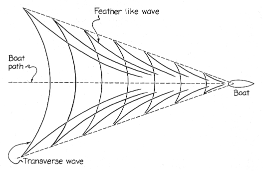Bibliography WATER WAVES: THE MATHEMATICAL THEORY WITH APPLICATIONS. J. J. Stoker. Interscience Publishers, 1957. ELEMENTARY DERIVATION OF THE WAKE PATTERN OF A BOAT. Frank S. Crawford in American Journal of Physics, Vol. 52, No. 9, pages 782-785; September, 1984.