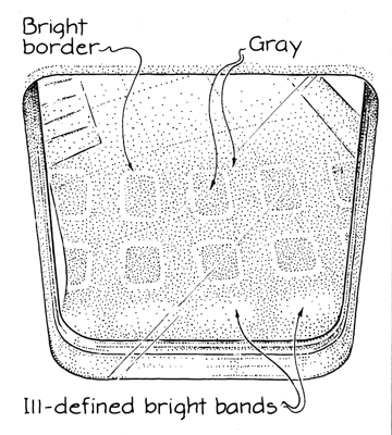 When there are a number of water surfaces below you-ponds, canals or even swimming pools-the sun's image plays hide-and-seek, skipping between water surfaces but always constrained to stay along a path set by the flight of the aircraft; you may appear to be moving over scattered pieces of a shattered mirror. Other shiny surfaces, such as the slanted metal roof of a shed or, if you are low enough, the windows of cars in a parking lot, send up brief flashes of light, which may be well off the sun's path over flat water. Even the bumpers on the cars or the metal traffic signs along roadways enter into play. I was surprised by the reflections from signs, which would not appear to be oriented correctly to reflect the sun upward. Apparently the sun is so bright that even the top edge of a sign can contribute a noticeable albeit fleeting reflection. Here is another reflection observation, which I shall leave for you to figure out. While flying on the sunny side of the aircraft with the sun above me, I noticed two rows of rectangles on the wing. Each rectangle was marked by a bright border. The rectangles in the farther row were longer than those in the nearer row. Once, when the pilot tilted the wing upward, the rows slid toward the fuselage and a third row appeared just beyond the second one. Obviously the rectangles were images of the windows. The puzzle is: Why were the images not in a single row? Air travel provides some lessons in high-pressure physics as well as in optics. Although airliners have pressurized cabins, the cabin pressure is always less than the air pressure on the ground. One way to monitor the change in air pressure in flight is to examine one of those sealed, plastic containers of gelatinous salad dressing that are served with dinner. When the plane is on the ground, the flexible top of the container bulges inward, but when the aircraft is at high altitude, the top bulges out, because the cabin pressure is less than the air pressure inside the container. If you shake the container to mix its contents, you coat the inside of the top of the container with salad dressing. When you then open the container by peeling off the top (if you can find the peelable edge), the sudden exposure of the interior to the low pressure in the cabin will blow the gooey coating outward. To avoid squirting salad dressing into your lap, take care to aim the opening toward the salad.