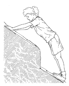 Imagine, for example, that you are climbing without benefit of equipment other than a safety belay line handled by a companion above you. You face a tilted slab of rock that is met at an obtuse angle by another slab of similar tilt, the juncture forming a ridge something like an edge of a pyramid. (The juncture is not sharp, though; it is worn as smooth as the faces of the slabs.) Where is the easiest climb: directly up one of the slabs or along the ridge? Again, suppose that the grade on a slab is steep but would nevertheless h allow you to stand and manage to walk up the rock. Is it safer to lean forward and use your hands? What if you are on a sloped ledge and find a similarly sloped ledge at about waist level: is it safer to lean forward and partially . support yourself with your hands on the higher ledge? Consider a third situation. A fairly wide vertical crack might allow you to "chimney": to climb into the crack, push your back against one side and press your feet against the opposite side, bending your knees to make the fit. To move upward you might essentially walk up one side of the crack while shoving your back up along the other side. (You gain additional, but minor, support if you press your hands against the wall at your back or, if the crack is narrow enough, against the opposite wall.) Or you might place one foot on each wall and press down while raising your body. Because you must exert constant pressure against the walls, a long chimney is tiring. If you stop to rest, is there an optimal location for your feet, one that would minimize the necessary push on the rock? When you climb, how exactly should you move your feet and back to decrease the chance of slipping? Suppose that as you climb you find the rock becoming slick. Should you place your feet higher or lower with respect to where your back pushes on the rock? If, to cite a final example, the crack is quite narrow and the rock on one side of it juts out more than the other, you might try a "lie-back." The technique requires that you be on the side of the crack opposite the section that juts out. You insert your fingers into the crack and pull against its side. Then you place your feet on the projecting rock on the opposite side and press hard. As you pull with your arms and push with your legs, the tension you create stabilizes you, but the effort is draining. How should you position your arms and legs to lessen the fatigue, and how should you move them to shift yourself upward safely? Some of the principles involved in these varied techniques of climbing were examined in 1976 by R. R. Hudson of the