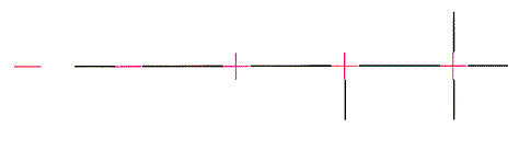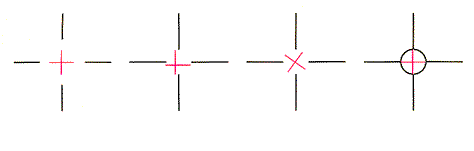 Redies and Spillmann investigated how the strength of neon spreading depends on the angular size of the colored crosses enmeshed in a black grating. When the pattern is on the direct line of sight (which is called foveal viewing), the angle occupied by a cross in an observer's field of view has to be between four and 35 minutes of arc if neon spreading is to appear. At the lower end of the range, the spreading is strongest and fills out a circle. At the upper end, it is weaker and takes on a diamond shape. When the angle is even larger, the spread of color retreats and lies just along the sides of the lines in the cross, an effect dubbed neon flanks. When the pattern is off the direct line of sight by several degrees (extrafoveal viewing), the upper and lower ends of the angular range for neon spreading shift to somewhat larger values. All of this indicates why the illusions on these pages often intensify if you adjust your distance from the illustrations: you thereby vary the angle subtended in your field of view by each colored line or cross, optimizing the illusion. Redies and Spillmann also examined variations of a single unit in which one cross has black lines at each end [see Figure 4]. When the cross is disconnected from the black lines by a separation or by misalignment through displacement or rotation, neon spreading disappears. The spreading is also eliminated if the cross is circled. If the black lines are short, the illusion is strong; it may still appear, albeit weakly, even if there are only mere dots at the ends of the cross. The most intriguing illustrations by Redies and Spillmann are the ones in which they strip the illusion to the bare essentials: single lines [see Figure 5]. If an isolated red line is viewed, there is no spread of its color, but if it connects two black lines so as to form a single, straight line, red neon flanks run along the red line. The spreading of color disappears if the black line on either side is removed.