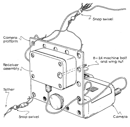 The receiver requires a six-volt power supply, which can be made from four 1.5-volt cells connected in series. Obtain a four-cell AAA battery holder. Solder the receiver's red lead to the positive terminal of the battery and the black lead to the negative terminal. Double-check the connections before reinstalling the receiver's batteries. Then turn on the power switches of the transmitter and receiver. Be sure the camera is turned on. When you press the transmitter's fire button, the relay's contacts will close, the camera shutter will trip and the film will be advanced. If the camera does not respond, keep the transmitter button pressed down for a second or so. If nothing happens, check the wiring and make sure the batteries are delivering five to six volts. Install the receiver system and battery pack in a plastic enclosure [see illustration above]. Secure the receiver with double-sided tape or hook-and-loop fastening tape, and stuff foam plastic between the components. Shake the assembled system to make sure it still works. You can attach the receiver system to the back of the camera with rubber bands. Even better, mount the camera and receiver on a platform made from a thin sheet of aluminum or model-airplane plywood [see below]. A pattern of holes drilled in the platform saves weight and provides attachment points for the receiver, camera and rigging. The receiver can be secured with a machine bolt, and the camera can be mounted directly on the platform with a screw (from a camera store) that fits its tripod receptacle. You can reorient the camera by rigging the platform in various ways or by affixing the camera to a ball-and-socket mount (found in most camera stores). As a safety measure, tie the camera to the platform with a short line. To guarantee that the platform hangs vertically, I sometimes attach the receiver to a strip of aluminum extending from the platform. The strip offsets the weight of the camera. To prevent the camera from rotating and swinging, I tie the nylon tether that prevents the camera system from floating away directly to the platform instead of to the balloons. You will next need to obtain the balloons themselves, the helium and a reel to wind the tether around. Surplus weather balloons can be used, but they are fragile. Whenever I do use them, I tie the camera system to a parachute whose canopy is tied to the balloon, or I deploy two or more balloons. These precautions twice saved my camera when a balloon suddenly burst high in the sky. A more robust and very inexpensive alternative to weather balloons and costly rubber balloons is what I call the BPTB lifting device, better known as the black plastic trash bag. Trash bags are available in various colors, so you will need to change the designation accordingly (a yellow bag is a YPTB, red is RPTB and so forth). Black is best because it absorbs the heat from the sun, thereby expanding the volume of the bag and enhancing the bag's lifting capacity. Find the largest-capacity bags possible.