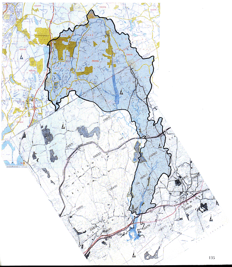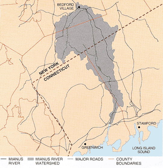 We had the opportunity to do some amateur cartography with the Westchester Land Trust, an environmental organization in Westchester County, N.Y. The maps we created illustrated a watershed system that went beyond political boundaries. We undertook the project to show how different types of land use affect the quality of the Mianus River, the main source of water for 130,000 residents in contiguous parts of New York and Connecticut. The maps highlighted environmentally sensitive areas and revealed those sections of the river that are particularly vulnerable to pollution. A watershed, the area drained by a specific stream or river system, resembles a bowl whose rim is marked by hilltops or ridges and whose base is a river or other body of water. Besides providing water for drinking and recreation, watersheds are essential for wildlife habitats, climate control, agriculture, industry and sometimes even transportation and electric power. Each of us lives in a watershed, although no one actually sees it. A map is probably the best way to make a watershed visible. It does so by shifting our frame of reference from man-made districts to a landscape defined by physical boundaries. It reveals the anatomy and physiology of the region. Constructing the watershed base map meant combining information from several different kinds of maps. First, we used state highway maps to determine the path and full length of the Mianus River. We found that this 37-mile-long river crosses five towns, two counties and two states before emptying into Long Island Sound. Once we knew where the river was and where it went, we assembled a large-scale paper map of the Mianus from large-format county road atlases. Such atlases are the ideal choice from which to make watershed maps because, in addition to being inexpensive and readily available, they render information at a useful scale and depict the natural and man-made features in color. We compiled enough pages to show all the town, county and state borders, and we carefully matched grid lines on the borders of the maps and connected the ends of the roads. Our finished base map required 19 atlas pages. Because we used both sides of some pages, we needed two copies of each atlas. Also used were drainage basin maps, which show the location of the drainage divides. The divides define the watershed boundaries-the rim of the bowl down which water drains into the Mianus River. Drainage basin maps show rivers and streams as solid lines and drainage divides as dotted lines. We needed four drainage basin maps to make a complete composite of the Mianus drainage basin: one Westchester drainage basin map and three U.S. Geological Survey quadrangle basin maps for southwestern Connecticut (the Mianus basin includes part of Fairfield County, Conn.). Drainage basin maps are generally available from some local government agencies. We obtained ours from the Westchester County Planning Department and from the Connecticut Department of Natural Resources. If drainage basin maps had been unavailable, we could have used topographical maps, or topos. In addition to showing rivers and streams, topos represent the hilltops and ridges as closely spaced lines. Finding the watershed boundaries on a topo requires an extra step. One would have to plot the drainage divides by connecting the highest elevations shown-a laborious and time-consuming task. Because a drawn river is by nature long and skinny, we had to be careful that our paper map did not get too big to handle. We decided that the maximum size would be 48 by 36 inches. As the Westchester part developed, it became clear that its scale of three inches to one mile would produce a base map of about the right size. We adjusted all other maps to this control scale. We quickly found out how difficult it is to work with rolled maps. So we made a map storage case by taping together two large pieces of scrap cardboard to keep the work flat. The finished paper maps were kept rolled for easy transport and long-term storage. Making composite maps is easy if all the pieces are drawn to the same scale. All our maps were drawn to different proportions, so we had three of them rescaled ("statted") to our control scale of three inches to one mile. A copy shop that reproduces blueprints was able to stat large maps as well as copy them. A small map must be enlarged in sections and then reassembled. To help the copy shop, we drew a precisely measured control line on the bottom of each map, showing the inch-to-mile ratio. One map was not printed at the scale indicated by its legend, so we had to draw a corrected line. Another had no legend at all, so we calculated the scale arithmetically. The copy shop statted the maps by enlarging the control lines until each was three inches long. Once the scales matched, we cut and taped the pieces together to make two maps: one of the river and one of the drainage basin. We laid a 48- by 36-inch sheet of Mylar over the drainage map and traced the outline of the Mianus watershed. Although the Fairfield County chunk had been correctly statted to scale, it did not line up with the Westchester chunk at the county border: roads, rivers and even the reservoir were slightly askew. We therefore adjusted the river map to make the pieces fit as closely as possible. We suspect that incorrect scaling is more common than is generally thought; one should maintain a healthy skepticism toward the presumed accuracy and objectivity of maps. Because the copy shop could not produce statted maps in color, we lost valuable information from the Fairfield section. Blue and green waterways and parks just disappeared from the black-and-white copy. We reoriented ourselves by hand-coloring major features with felt-tip markers. When we placed the transparent drainage basin Mylar over the paper map of the river, the Mianus watershed immediately appeared on the landscape. We saw a completely new, more comprehensive picture: the relations among the bounda