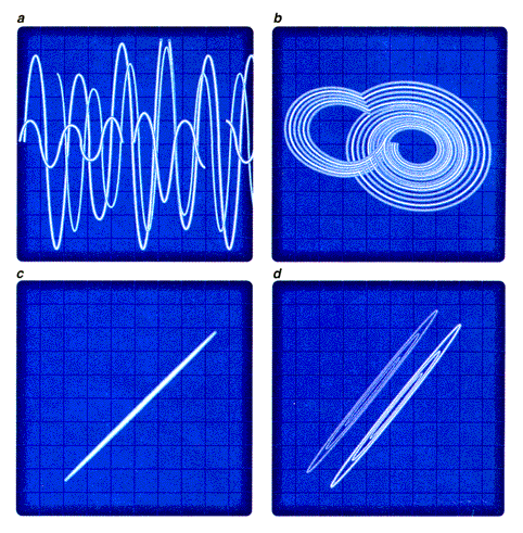 You can verify that the circuits are producing chaos by displaying information from one channel only. If that circuit's output is chaotic, the oscilloscope image will not remain stable on any setting. Instead it produces a pattern similar to a sine wave that rapidly changes in amplitude. A detailed explanation of why chaos arrives in the driving circuit is rather complex. Briefly, the two integrating op-amp components (the op-amps that have capacitors, labeled "A2" and "A3") are connected in a loop to generate a sine wave. The op-amp components A4 and A5 amplify this sine wave, causing its amplitude to increase exponentially over time. Once the signal reaches a certain amplitude, the high-frequency op-amp (A1) brings the amplitude to zero and starts the process all over again. Chaos creeps in during the switching, when A1 resets the circuit. You can see if your circuits are producing synchronized chaos by plotting the output of one circuit at Xs with that of the other. If the circuits are perfectly synchronized, the oscilloscope will produce a straight line angled at 45 degrees. Because of the switching, the synchronization will probably not be exact. Two broadened, parallel lines may be the result instead. Do not be disappointed if the circuits fail to synchronize on the first try. Check for faulty connections. The circuits are rather fussy, so any poorly made connections could wreck the synchronicity. A faulty op-amp could be the culprit. You might find that both circuits generate chaos but are not synchronized. There are two possible explanations. One, components that are supposed to be nearly the same may differ too much; for example, two resistors designated as 1,000 ohms may turn out to be 950 and 1,050 ohms. Two, the response time of the high-frequency op-amps may be insufficient, in which case the op-amps should be replaced. Once the synchronizing chaotic circuits are working properly, you can create the form of message encryption envisioned by Pecora and Carroll. You will need two more op-amps and several large (high-impedance) resistors. With these components, you can easily build two "summing-amplifier" circuits Such circuits add two signals together and then invert them. These two circuits are connected to the driving and synchronizing circuits [see illustration below]. The message we encoded was a simple sine wave created by a function generator. The sine wave is fed to one of the summing-amplifier circuits, which combines the sine wave with the chaos generated by the driving circuit and inverts the total signal. Amid the chaos, the sine wave is almost impossible to decipher. The synchronizing circuit, however, can readily extract the message from the chaos. Because the synchronizing circuit produces the same chaotic pattern as the driving circuit, all one has to do is add the synchronizing circuit's chaotic signal to the driving circuit's total (inverted) signal. What is left is the message. The second summing-amplifier circuit does this job and reinverts the sine wave to its original form. The summing-amplifier circuits may cause the entire system to behave quite erratically; the image on the oscilloscope may blow up. The problem is that the external devices drain some current and thereby jolt the circuits from one so-called chaotic attractor-a pattern around which the chaotic signals tend to settle-to another. Large resistors help to alleviate the problem by preventing current drain. We used resistors of 60 kilo-ohms and one mega-ohm, although 50 kilo-ohms will probably do. Another way to get the circuit back to a single attractor is to short out an op-amp periodically. Briefly touch a grounded wire to the output of one of the op-amps (preferably the ones with capacitors). This process randomly resets the state of the circuit. The op-amps will not be damaged so long as the shorting is brief. Turning the power supply off and then on again will also work. To hear the message, you will need to amplify the output. Op-amps do not deliver much current (and the high-impedance resistors do not help matters). A stereo system is a nice solution. Alternatively, a basic electronics handbook will detail how to build simple amplifying circuits to drive a small speaker. You might try to encode signals more complex than sine waves. You can send audible messages by using a microphone, which converts sound waves into concealable electrical signals. Or you can try sending Morse code: each "click" sends a constant voltage signal. On the other end, you can wire up a small light bulb or a light-emitting diode (known as an LED), which should z flash in unison with the clicks if the circuits are working properly. You can also demonstrate the effects of attractors in chaos by plotting the output of one of the integrating op-amps versus its neighboring op-amp. Such an input produces a spectacular pulsating spiral pattern and is evidence for a single attractor. Feel free to change some of the components to see what happens. Remember, you are trying to create chaos.