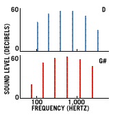The contentious passages were certainly unorthodox. Tchaikovsky alternated the main theme and accompaniment between the first and second violin sections; as a result, each section played every other note of each theme. Nikisch wanted Tchaikovsky, who was preparing the piece for public debut, to rescore the movement so that the first violins would play the main theme alone, and the second violins would play only the accompaniment. No one knows why Nikisch opposed Tchaikovsky's score so intensely. He may have rehearsed the Pathétique, and it's tempting to believe that he did. If so, Nikisch's musical ire might have been aroused by a peculiar and newly discovered facet of human perception. The odd score hardly affects a listener today, because the first and second violins sections sit together; the listener hears both themes coming from the same region of the orchestra. But 100 years ago orchestras were arranged differently. The first violins sat on the conductor's left, and the second violins on the conductor's right. Standing in the center, Nikisch may have felt as if he were being battered from both sides by two disjointed sets of sounds that did not integrate into a harmonious whole. I say "may have felt" because (here's that peculiar facet of perception) people don't all hear music in precisely the same way. In fact, according to Diana Deutsch, a professor of psychology at the University of California at San Diego, how we perceive certain sound patterns depends on our native language and whether we are right- or left-handed. Even our dialect matters: people brought up in California tend to hear certain sound patterns quite differently from those reared in England, for example. The Pathétique's contentious measures are an example of this kind of pattern. Most people's brains blend the violins' voices into Tchaikovsky's intended melodies. Nikisch's singular genius for conducting, however, suggests an extraordinary precision at discerning patterns in sound. He may have objected to the score because his ear was not fooled by the illusion. Today these mysterious illusions can serve as sonic scalpels for dissecting the brain and discerning some of its inner workings. Until now, only a handful of professional scientists have been able to wield them. But no longer. Deutsch has just created the first collection of audio illusions on compact disc. Skillfully narrated by Deutsch herself, "Musical Illusions and Paradoxes" will let you experience some striking sonic chicanery (Philomel Records, Box 12189, La Jolla, CA 92039-2189; telephone: 800-225-1228; fax: 619-453-4763; $14.95 plus $4.95 shipping). What is more, armed with this CD, any amateur scientist can conduct original research on how the brain processes sound. I recently visited Deutsch's laboratory and got to experience these illusions firsthand. My initiation began with the octave illusion. Through stereo headphones, she played me a simple pattern: two notes one octave apart alternating from ear to ear so that when the higher note was played in my right earphone, the lower note appeared in my left, and vice versa. But that's not at all what I heard. Rather I perceived a pattern that alternated between a single high note and a single low note with the high note always appearing in my right ear and the low note always appearing in my left. This, Deutsch insists, makes me a typical right-hander. We righties tend to be dominated by the left hemispheres of our brain. Most of the signals from my right ear shoot over to my left hemisphere, where neurons decipher their pitch, and my weaker right hemisphere predominately processes signals from my left ear. Then, a separate bunch of neurons deciphers where sounds originate in space. These neurons tend to rely on frequency to localize sound and thus assign the source to whichever ear receives the higher pitch. That, coupled with my left hemisphere's dominance, creates the paradox: when the high pitch enters my left ear, I can't hear it at all, and I localize the pitch I do hear (the low pitch) in the wrong ear. People with more equally balanced hemispheres than I have (most left-handers and some right-handers) hear the illusion differently. In fact, left-handers are equally likely to hear the higher tone in either ear and are twice as likely as right-handers to hear more complex patterns in which notes change pitch or the higher tone shifts from ear to ear. Lowering the right earphone's volume decreases the stimulation inside the left hemisphere and thereby tilts the scales toward the right hemisphere. At some point, the illusion changes for even the most left-brained right-hander. The same trick might suddenly cause a hemisphere-balanced lefty to perceive the illusion (no one has tested the possibility yet). The difference in volume between the two earphones required to change the subject's perception provides a measure of hemispheric dominance. Volume control is in this way your first sonic scalpel. Set the level on the soft side. Adjust the balance knob on your stereo amplifier until the illusion just changes. Then using a sound meter (check your local Radio Shack store), measure the sound intensity in each earphone. Repeat the procedure several times and average the result. Plot a histogram of this average (see April's column for information about histograms) for about 30 righties (or lefties), and you will discover something fundamental about the way brains of right-handers (or left-handers) are structured. Deutsch's so-called tritone paradox presents more research opportunities. The paradox uses computer-generated tones constructed from the same note (say, D); each tone effectively consists of all the same notes spanning five octaves played simultaneously [see illustration on the right]. The result is ambiguity: people perceive the tone as a D but disagree as to which octave it belongs. The paradox comes about when a second, similarly crafted tone is played immediately after the first. This