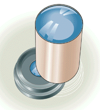 Because eyepieces sometimes need to be cleaned, the top lens is normally designed to unscrew from the tube. The other lens of the eyepiece may be attached more permanently, usually recessed slightly from the bottom end of the tube. Unscrew the top lens and discard it. You will also need to remove the outer housing that holds the eyepiece in place by unscrewing it from the main body of the microscope. Turn the eyepiece upside down and insert it into the eyepiece holder so that the lens projects above the top of the holder by about 1/4 inch (about half a centimeter). Use a few drops of Krazy Glue to hold it in place. Set the camcorder lens hood thread side down onto a wide strip of masking tape that is positioned sticky side up on a flat surface. Then place the eyepiece holder neck down in the center of the hood, pressing it firmly against the tape. Now mix a batch of epoxy and pour it between the neck and the lens hood. Take care not to allow any epoxy to ooze onto the threads of the lens hood. After the epoxy sets, lift the assembly and remove any tape sticking to the lens hood or covering the eyepiece. Although you could now just screw the adapter to the microscope and the video camera to the adapter, that top-heavy arrangement would be quite precarious. Moreover, some high-end microscopes have their eyepieces canted to the side for the comfort of the viewer, and these instruments would not be able to support the weight of a camcorder attached at an angle. But Carter devised a sturdy stand that helps to hold his camcorder in position yet lets it freely slide up and down as he focuses the microscope. The stand functions best when the eyepiece is vertical, but it should also work in situations where the eyepiece must remain at a slight angle. Carter built the base of his stand from a piece of scrap 3/4-inch plywood to which he attached an adjustable closet rod. First affix the end of the closet rod to the base. Then place your microscope on the base, screw on both the adapter and your camcorder and adjust the microscope's focusing knob so that the camcorder is as low as it can go. Take care and make sure things don't topple over at this point.