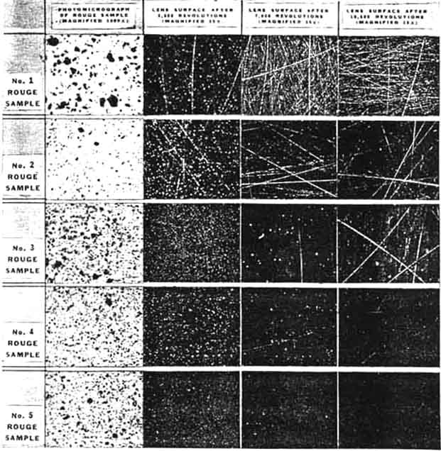 the particles of rouge are roughly 1/30,000 to 1/50,000 inch in diameter-that