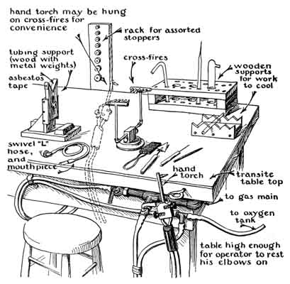 workbench is shown in Fig. 1. Cross-fires heat the glass to softness,