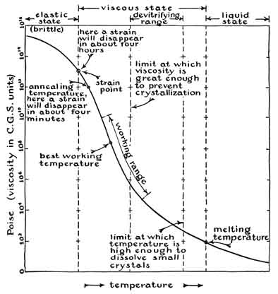 105 and 1010 poise, with the optimum working viscosity about 108.6 poise.