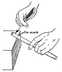 be broken at the scratch-mark by means of a stroke with the file as shown