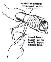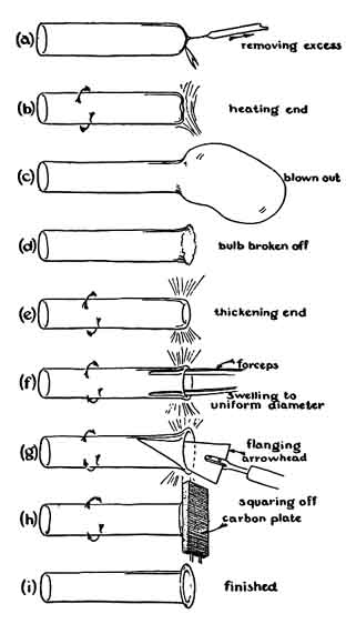glass tubes to serve as handles for rotating the work, and others with