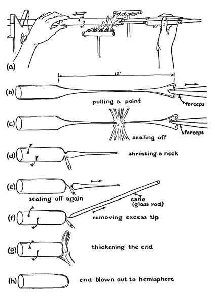 with closed glass tubes, to close up the ends of small tubes, are also