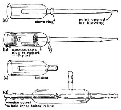 is removed. A glass sleeve, shaped as illustrated, is then sealed to the