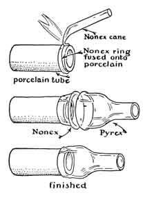 is then washed, and a short sleeve of Pyrex (or Nonex, depending on the