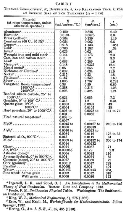 Values of the heat conductivity for various materials are given in Table