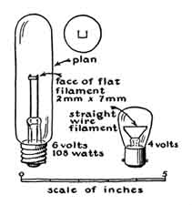 The lamp shown at the right has a straight filament. It is useful as a