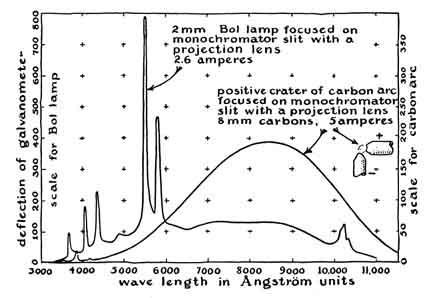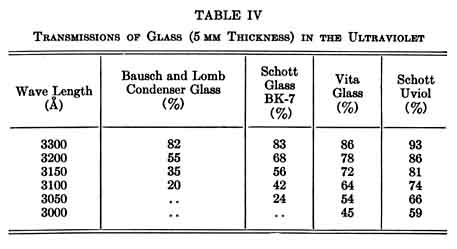 bulbs 1/4 mm in thickness, the spectrum extends from about 3100 Angströms