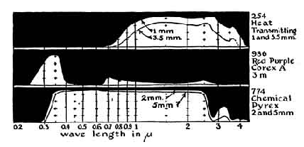 in the ultraviolet and infrared by the transmission of glass. With glass