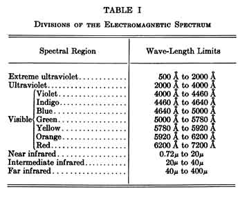 are defined roughly by the wave lengths given in Table I. In the text
